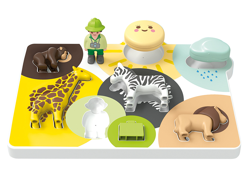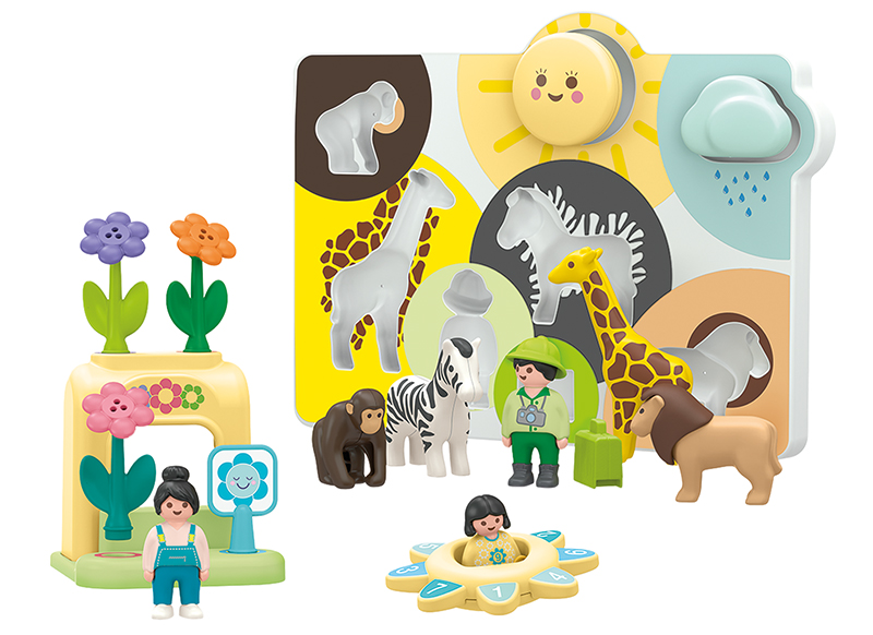 Welkom in een speelse wereld vol avontuur én leren! Deze Playmobil Junior set combineert een jungle-thema met een vrolijke bloementuin en is speciaal ontworpen voor jonge ontdekkers. Op het inlegbord vind je leuke, herkenbare figuurtjes zoals een aap, een zebra, een giraf, een leeuw, een mannetje in safari-uniform, een koffer én natuurlijk de zon en een regenwolk. Perfect om vormen te herkennen en te leren sorteren! Elk figuurtje past netjes in het bijhorende silhouet – ideaal om de fijne motoriek te versterken. Naast de jungle ontdek je ook een kleurrijke bloementuin met twee speelfiguurtjes en een grote fantasiebloem. Die bloem heeft blaadjes met cijfers erop en in het midden is er een zitje waar je een figuurtje in kan plaatsen. Zo combineer je rollenspel met telspelletjes – en dat maakt leren wel héél leuk! Deze set stimuleert niet alleen de hand-oogcoördinatie, maar ook verbeeldingskracht, eerste telvaardigheden én het benoemen van dieren, vormen en cijfers. Een speels en leerzaam pakket dat uitnodigt tot fantasierijk spel én educatie. |