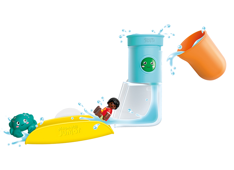 | Samenstelling | 1 speelfiguurtje, 1 krab, 1 glijbaan, 1 trechter, 1 gietbeker, 1 trechterbekertje, 2 stevige zuignappen. |