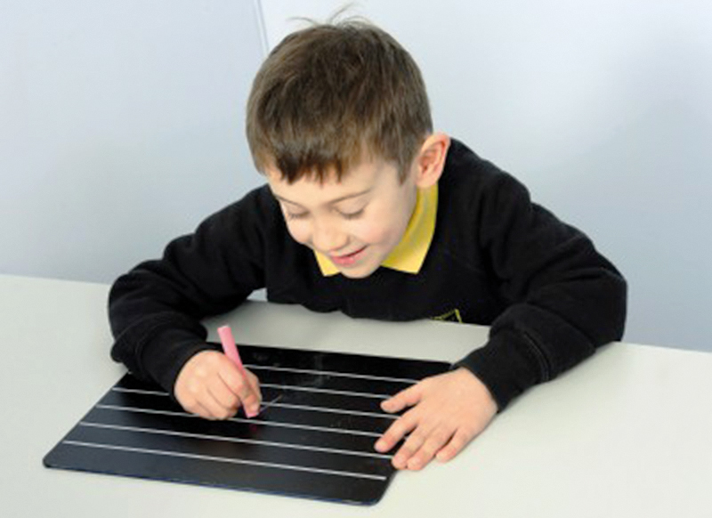 Dubbelzijdige schrijflei voor krijtjes en whiteboard stiften.