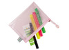 Handige zip-pochette in A6-formaat, PVC-vrij en roze van kleur. Ideaal voor het opbergen van kleine documenten, schrijfwaren of accessoires. Compact, stevig en duurzaam voor dagelijks gebruik.