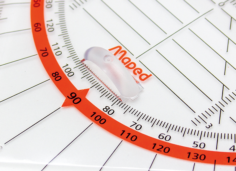 Uit plastic. 16 cm, 45°. Met handvat. In ophangetui.
