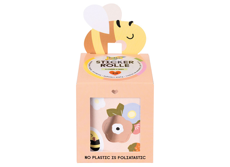 Rol van 4 meter met 416 stickers in thema Bloemen en bijen gemaakt uit roos-goud drukfolie.