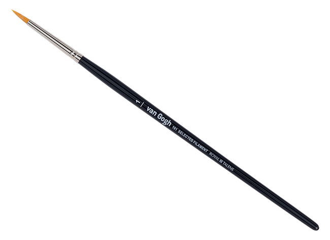 Penseel voor aquarel- en plakkaatverf. Haren van goudkleurige polyestervezel (selected filament). Donkerblauw gelakt. Slijtvaste en veerkrachtige haarbundel. Goed wateropnemend vermogen.