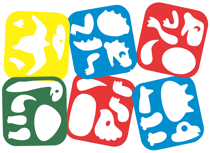 Zet je schrap voor een artistiek avontuur! Assortiment van 6 leuke, handige sjablonen. Gebruik deze dinosaurus onderdelen om je eigen dinosaurus te maken. Maak een omtrek met de sjablonen en voeg leuke kleuren toe wanneer je klaar bent.