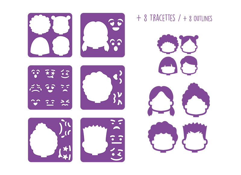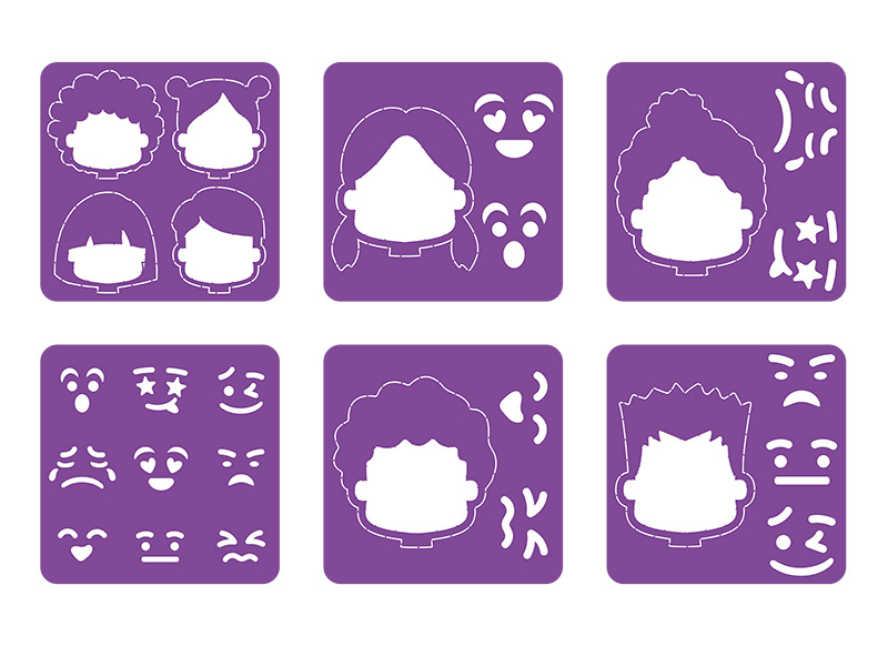 Laat kinderen creatief hun emoties uiten met deze 6 paarse sjablonen! Gemaakt van duurzaam en flexibel plastic, ideaal voor gebruik met verf, stiften of kleurpotloden. Perfect voor educatieve activiteiten en het stimuleren van emotionele en creatieve ontwikkeling.