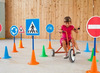 Verkeersborden op staander. Om snel een leuk parcours op te zetten en kinderen te introduceren in verkeersveiligheid. De set omvat 12 veelvoorkomende signalisaties.