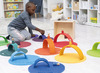 De zitmatten zien er niet alleen geweldig uit in hun frisse kleuren, ze zijn ook ongelooflijk praktisch. Ze worden geleverd met een doorzichtige plastic zak met handvat om ze op te bergen en mee te nemen. De matjes zelf hebben ook uitsparingen die je kunt gebruiken om ze vast te houden. Er is een gladde en een geribbelde kant voor een stevige grip, zodat de kinderen niet uitglijden op de matten. Ze zijn perfect geschikt voor allerlei activiteiten: kringmomenten, bewegingsspelletjes, zit- en luistermomenten of als markeerplek in een parcours. Kortom, een functionele blikvanger! |