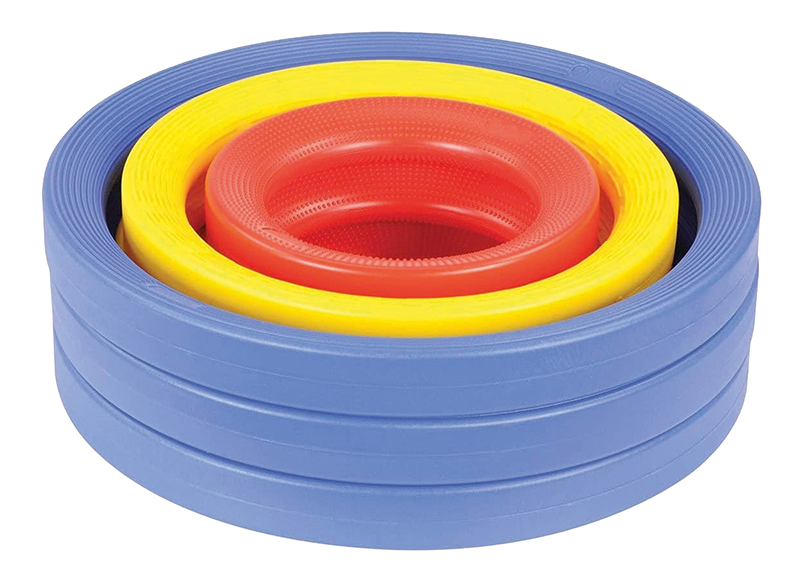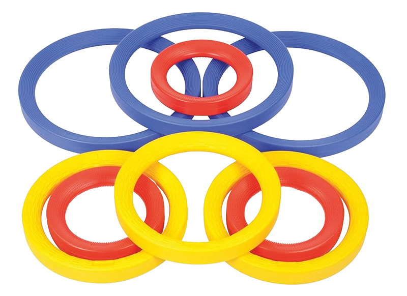 | Samenstelling | 3 kleine ringen (Ø 25 cm), 3 middelgrote (Ø 35 cm) en 3 grote ringen (Ø 45 cm). |