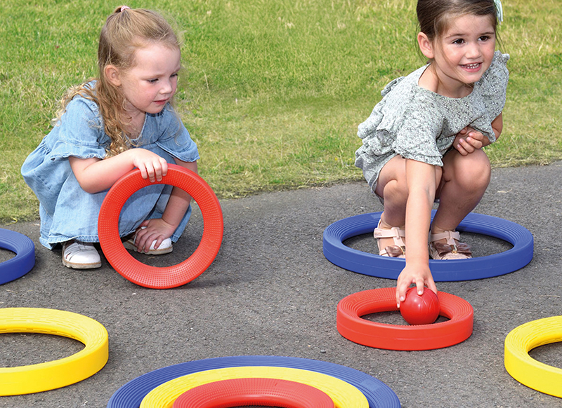Deze set van 9 hoogwaardige speelringen is een echte alleskunner in elke speel- of leeromgeving. De set bevat 3 kleine ringen (Ø 25 cm), 3 middelgrote (Ø 35 cm) en 3 grote ringen (Ø 45 cm), elk met een eigen kleur voor makkelijke herkenning. Gemaakt van duurzaam en stevig HDPE met een getextureerd oppervlak, dus perfect bestand tegen intensief gebruik – zowel binnen als buiten. Wat deze ringen extra bijzonder maakt? Iedere ring is voorzien van braille, waardoor ze ook toegankelijk zijn voor kinderen met een visuele beperking. De verschillende maten en kleuren bieden eindeloze mogelijkheden: sorteer volgens grootte of kleur, maak parcours, gebruik ze als mikdoel, verzin fantasierijke spelletjes of laat kinderen taal ontdekken via vergelijkende begrippen zoals klein, kleiner, kleinst of groot, groter, grootst. |