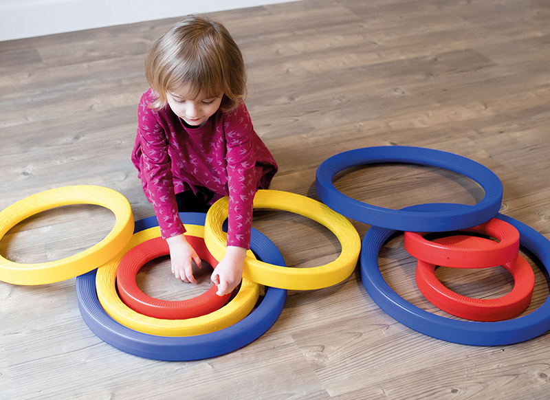 Rollen, gooien, sorteren of vergelijken! Deze set van 9 kleurrijke ringen in 3 maten nodigt uit tot eindeloos actief en creatief spel.