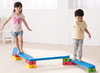 | Samenstelling | 8 grote en 8 kleine bouwstenen, 2 hoepels van 60 cm, 2 gymstokken van 35 cm, 2 gymstokken van 70 cm, 4 evenwichtsbalken en 8 klemmen. |