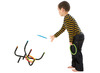 Ringspel met 5 richtpunten in meerdere kleuren. Mik de gekleurde ringen over de verschillende punten.