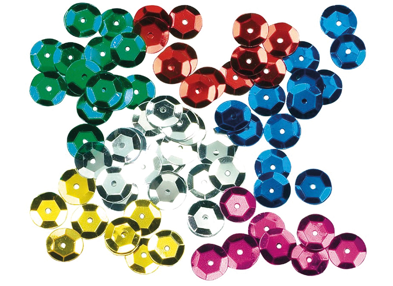 Assortiment van 6 ronde pailletten in verschillende kleuren om te gebruiken als versiering.