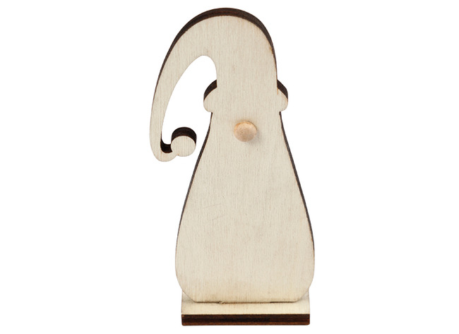 Decoreer deze grappige, staande kabouter van licht hout om hem nog charmanter en persoonlijker te maken. Probeer de kabouter te versieren met hobbyverf, decoupage van stof, verschillende boetseermassa enz. Perfect voor het creëren van een kerstsfeer.