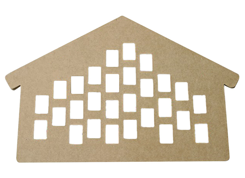 Groot houten bord in huisvorm met 28 vakjes waar je een foto van iedere leerlingen in kan plaatsen. Perfect om je klas mee te decoreren!