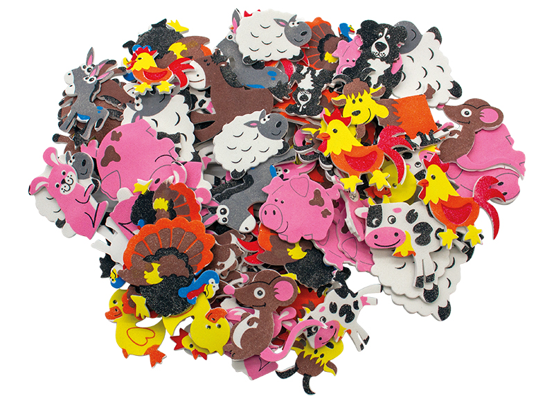 Gekke boerderijdieren in zelfklevende foam waar je leerlingen helemaal zot van zullen zijn! Maak er samen de mooiste knutselwerken mee in de klas.