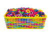 Kleurrijke plastic manden met weefstroken. Geschikt om allerlei materialen in op te bergen.
