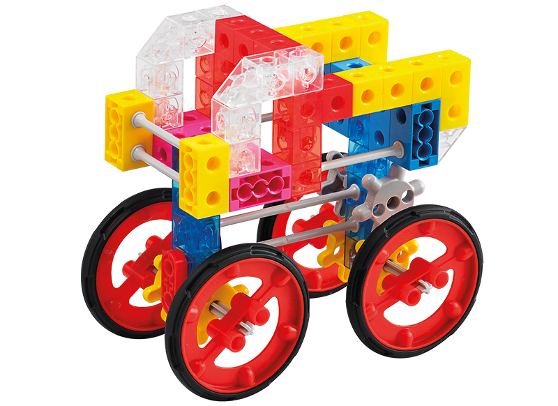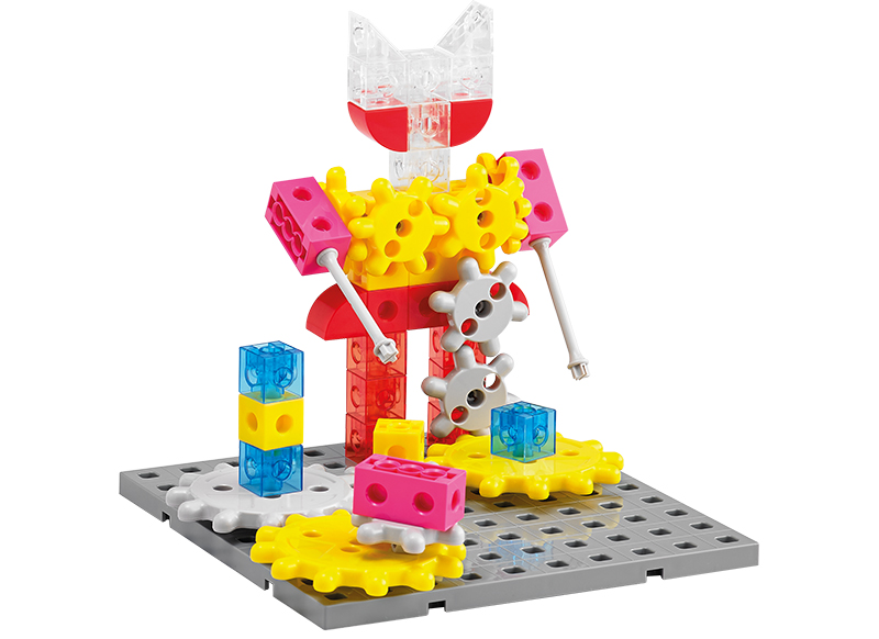 | Samenstelling | Set bevat 117 blokken (staafjes, tandwielen...onderplaat inbegrepen) en 1 activiteitenboekje. |