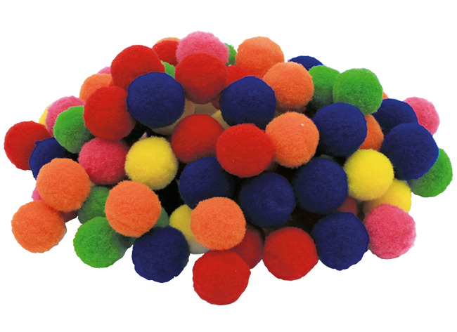 | Samenstelling | 90 gekleurde pompons in een zakje. |