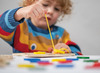 Kinderen leren kleur- en vormherkenning terwijl ze elke knop op de planken rijgen.