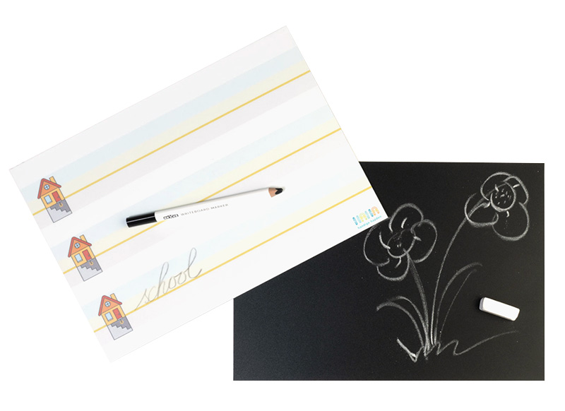 Schrijven wordt leuk met het flexibel schrijfbord van Handige Handen! De huisjeszijde helpt bij lettervorming, de zwarte kant is perfect voor creatieve krabbels.