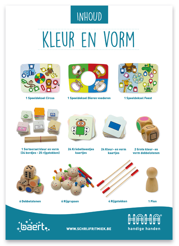 Met het didactische oefenmateriaal van Handige Handen maken peuters en kleuters spelenderwijs kennis met vormen en kleuren.