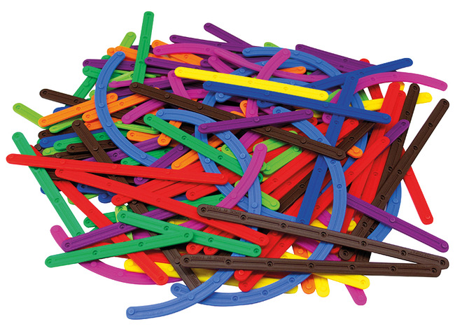 Spelen met de Geostix van EDX stimuleert de verbeeldingskracht en het creatieve denkvermogen van kinderen. De rechte en gebogen flexibele stokjes klikken heel gemakkelijk in elkaar en zo kunnen eindeloze creaties (ook creaties met bewegende delen) gemaakt worden. |