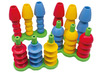 Verticaal bouwen met grote stukken in 4 vormen en 3 verschillende kleuren die rijgbaar zijn op een sokkel. De onderdelen zijn eenvoudig van vorm, mooi van kleur en voelen aangenaam aan. Een heerlijk leerrijk spel voor jonge kinderen.