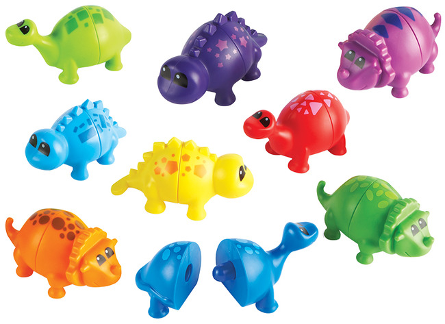 | Omschrijving | Jonge kinderen gaan in deze set aan de slag met de kleurrijke en grappige dinofiguren. Elke dino bestaat uit twee te combineren delen volgens kleur en vorm. Zo maken ze leuke combinaties met verschillende kleuren. |