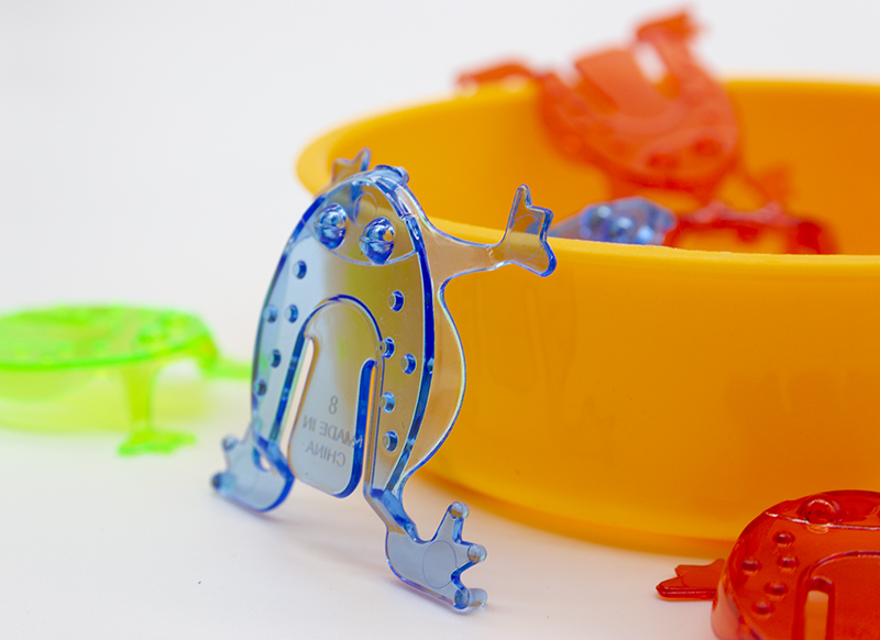 | Samenstelling | 12 kikkers in 3 kleuren en schaaltje. |