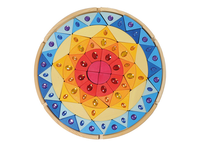 Kinderen kunnen de onderdelen gebruiken om mozaïeken, patronen en kunstwerken te maken, of de stukken combineren met andere Grimm’s sets om grotere constructies en verhalen tot leven te brengen.