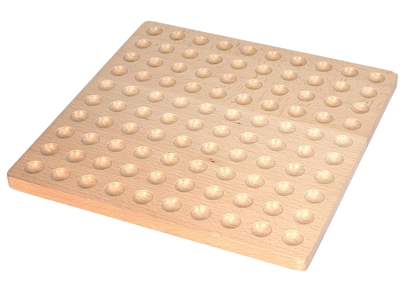 Houten honderdveld, ideaal te combineren met vilten bolletjes voor tellen, sorteren en open-ended spelen. Bevordert rekenvaardigheden en creatief denken.