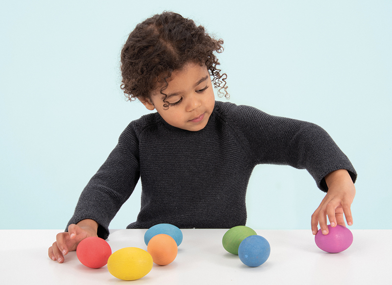 | Omschrijving | Verrijk de speelervaring met onze regenboog eitjes. Deze set van zeven prachtig vervaardigde beukenhouten eieren, elk in een andere kleur van de regenboog, toont de natuurlijke houtnerf voor een esthetische aantrekkingskracht. Deze veelzijdige eieren ondersteunen persoonlijke en fysieke ontwikkeling door te voorzien in activiteiten zoals balanceren, tellen en sorteren, evenals het ontwikkelen van beschrijvende taalvaardigheden. |