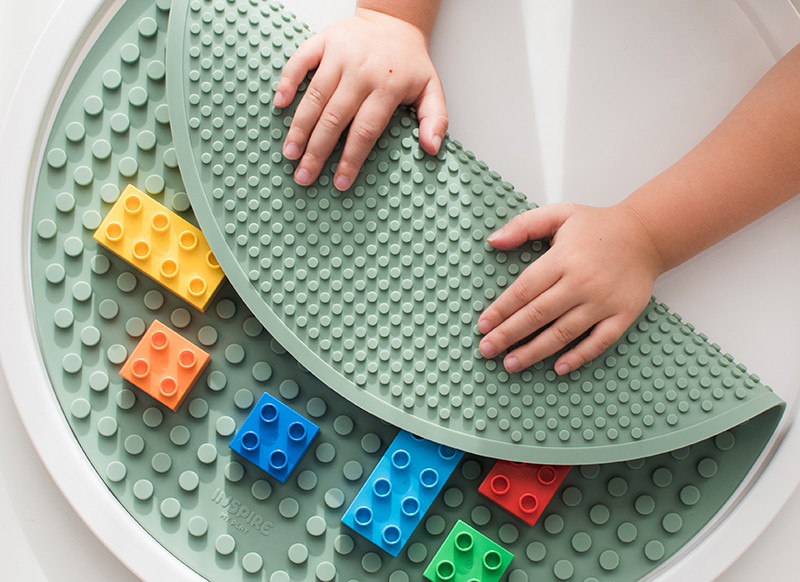 Open-ended - oprolbare bouwplaat - Inspire My Play - PlayTRAY - Building Block Mat - smoke green - accessoire - per stuk