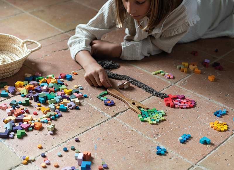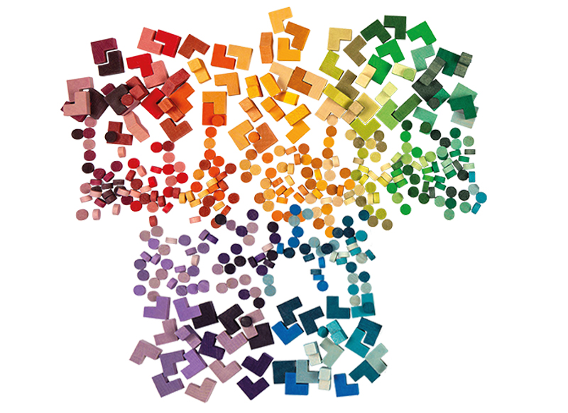 Grapat Mis Match and Bloom: 400+ houten vormen in 36 regenboogkleuren. Ideaal voor sorteren, patronen maken en creatief spel.