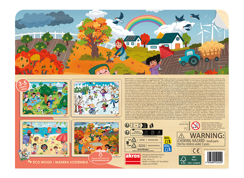 Ontdek de 4 seizoenen én een duurzame wereld! Deze educatieve puzzelset van Akros leert kinderen spelenderwijs over natuur en klimaat.
