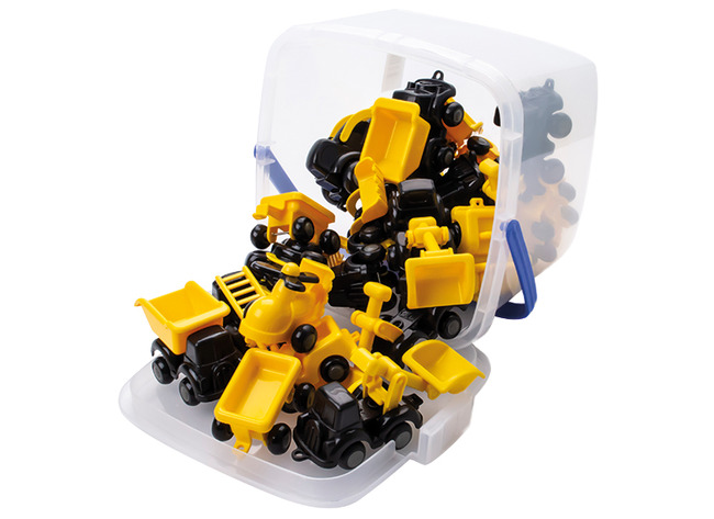 | Samenstelling | 20 voertuigen verpakt in een kunststof emmer de deksel: 5 jeeps, 2 tractoren, 5 aanhangwagens, 3 kiepwagens, 2 graafmachines 3 bluswagens. |