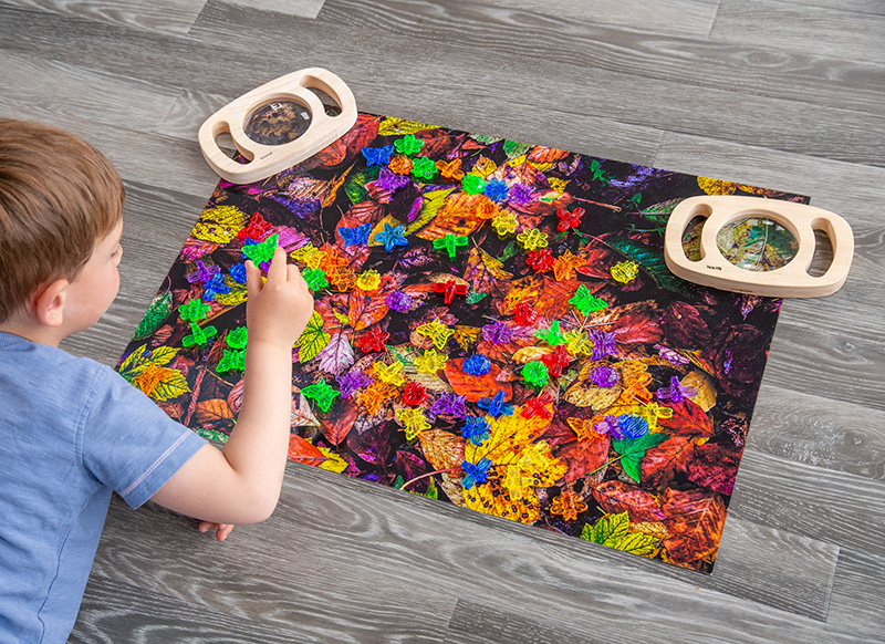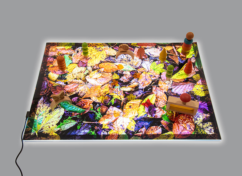 Een sfeervolle speelmat die de warme kleuren en texturen van de herfst naar elke speelruimte brengt. Met een realistische print van vallende herfstbladeren is deze mat een prachtig startpunt voor sensorisch spel, rollenspel en taalontwikkeling rond de natuur en seizoenen. Dankzij het handzame A2-formaat past deze mat op speeltafels of themaplek, maar komt hij pas écht tot leven op een lichtbord! De kleuren lichten op, wat zorgt voor extra visuele prikkeling en een betoverende herfstervaring. Combineer met loose parts, natuurlijke materialen of mini-diertjes en maak de herfst tastbaar en leerzaam. |