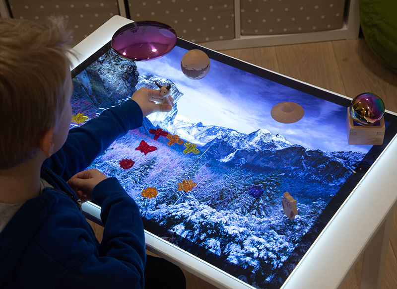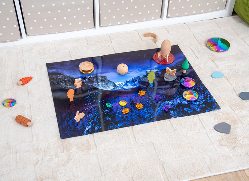 Dompel je onder in een ijskoud mooi berglandschap, met sneeuwvlaktes, heuvels en een blauwe winterlucht. Deze visueel aantrekkelijke speelmat vormt de ideale achtergrond voor sensorisch spel, kleine wereldjes en seizoensactiviteiten rond winter en kou. Met zijn A2-formaat past hij perfect op een tafel, themaplek of – extra magisch – op een A2 lichtbord, waar het wintertafereel nog meer tot leven komt. Gebruik de mat als basis voor loose parts, dieren of sensorisch sneeuw. De realistische details prikkelen de fantasie én nodigen uit tot gesprekken over het klimaat, seizoensveranderingen en natuurlijke landschappen. |