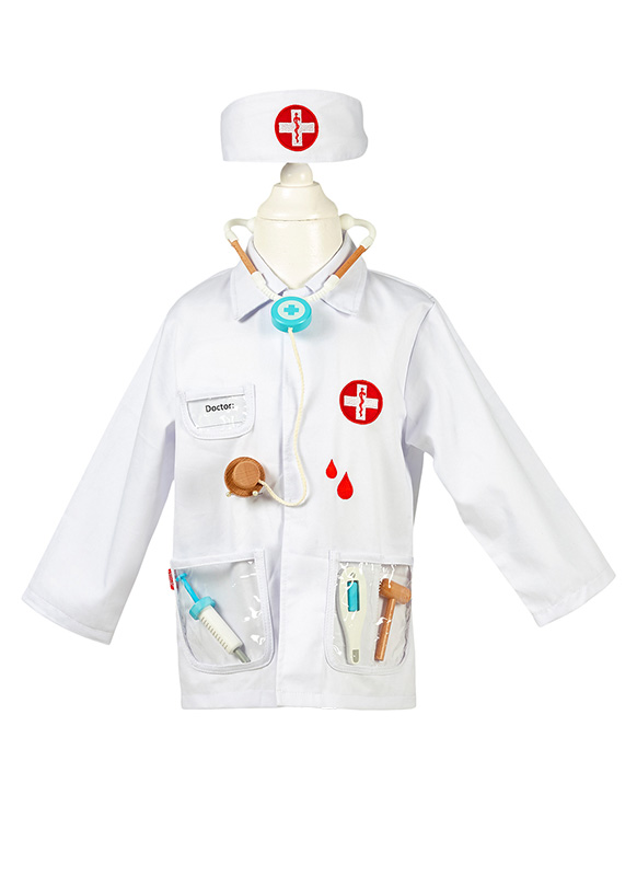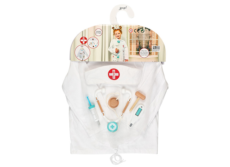 Trek de witte jas aan en speel dokter! Met deze Souza verkleedset verzorg je knuffels, controleer je hartjes en geef je pleisters. Spelenderwijs leren helpen en zorgen!