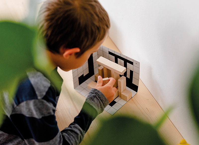 Bouw de schaduw na met de houten blokken.