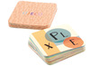 | Kenmerken | Letters in hout, kaartjes en spelbord in karton. |