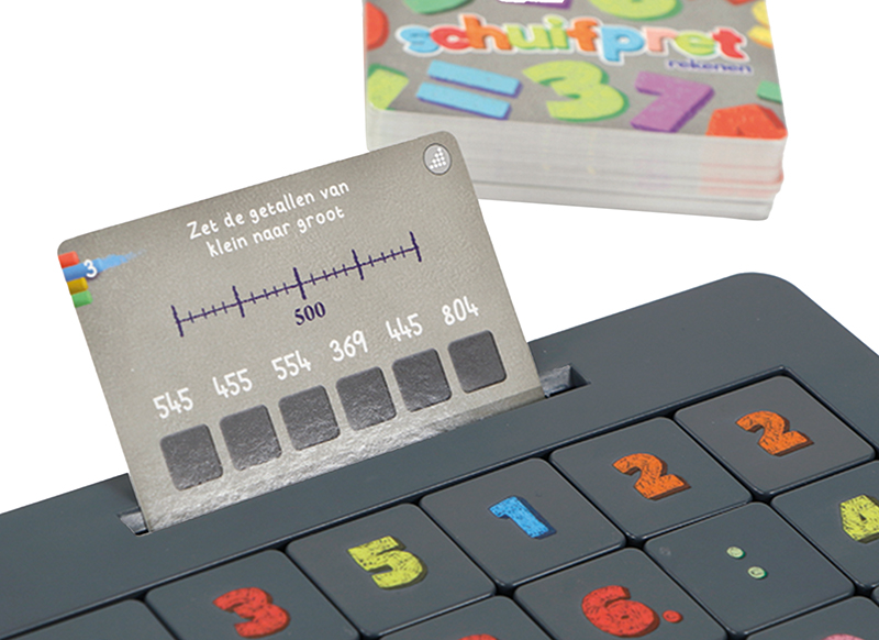 Met Schuifpret Rekenen wordt oefenen met rekenopdrachten een echte uitdaging vol spelplezier! Kinderen schuiven losse blokjes met cijfers en rekentekens over het bord om de juiste oplossing te vinden. De stevige spelblokken blijven netjes in de uitsparingen liggen, zodat alles op z’n plek blijft tijdens het puzzelen. De opdrachten zijn ontwikkeld in samenwerking met leerkrachten en sluiten perfect aan bij de leerlijnen van het basisonderwijs. Elk kaartje heeft een eigen moeilijkheidsgraad, en het niveau is makkelijk aan te passen aan de leeftijd of het rekenniveau van het kind. Kom je er niet uit? Geen zorgen! Op de achterkant van elke opdrachtkaart staat de oplossing, waardoor kinderen volledig zelfstandig kunnen oefenen. Kinderen oefenen zo op een speelse manier met optellen, aftrekken, vermenigvuldigen en delen, terwijl ze ook werken aan concentratie, logisch denken en probleemoplossend vermogen. |