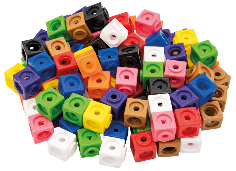 | Kenmerken | Vervaardigd uit duurzaam kunststof. De kubussen hebben ieder een geometrische vorm op de zijdes zoals een driehoek, vierkant, rechthoek enz. |