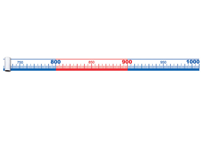 Rood/blauwe getallenlijn van 0 tot 1000.