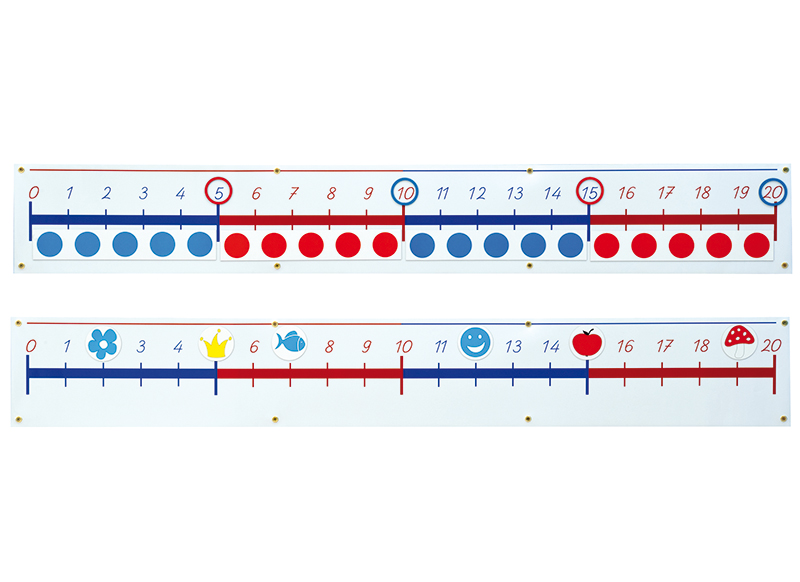 | Samenstelling | 1 magnetische getallenlijn, 10 symboolkaarten, 22 afdekplaatjes en 22 ringen. Geleverd met pluggen en vijzen voor muurbevestiging. |