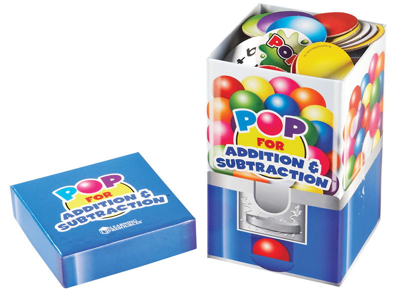 | Omschrijving | De spinner geeft aan hoeveel kaartjes een speler uit de doos haalt. Elke speler die een bewerking correct oplost, verdient een kaartje. Trek je een ‘POP’, dan moeten al je reeds verzamelde kaarten terug in de doos... Een eenvoudig spel dat ontzettend leuk is. Je kan zelf bepelen welke oefeningen in de doos zitten en zo het oefenniveau aanpassen aan het kind. |