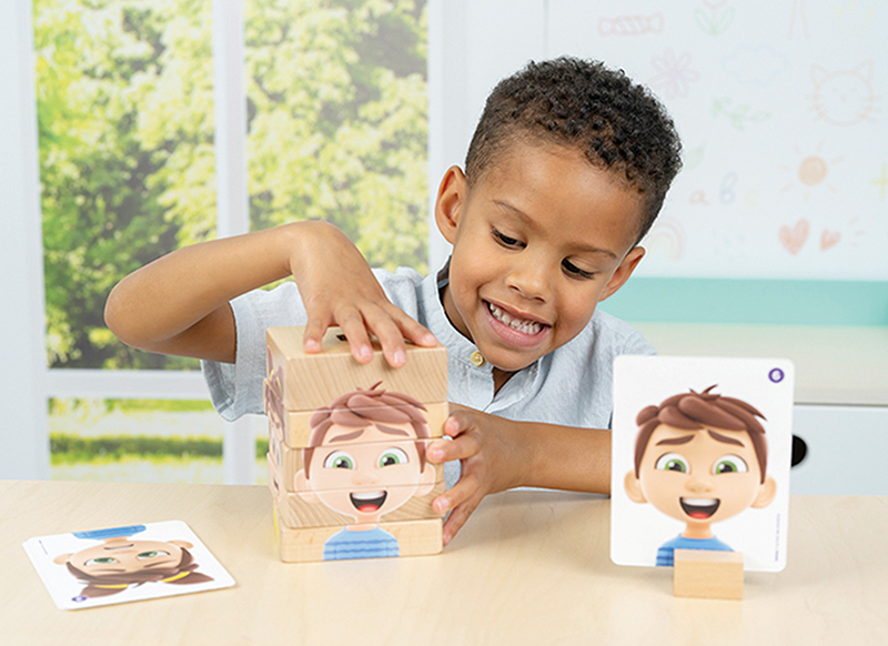 Boos, blij, bang of verdrietig? Bouw gezichten met houten blokken en ontdek spelenderwijs hoe emoties eruitzien én voelen.