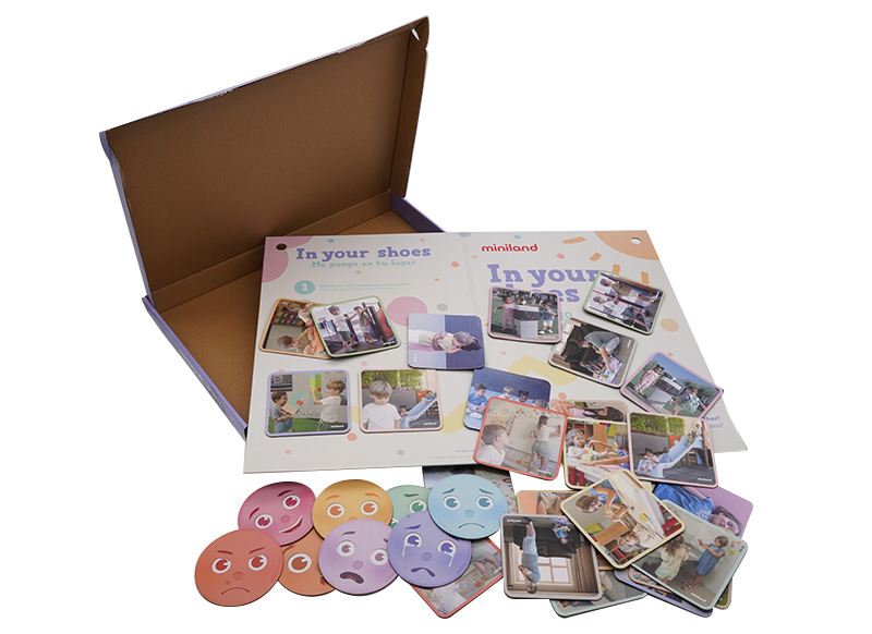 In Your Shoes is een educatief bordspel dat kinderen helpt om empathie, samenwerking en emotionele vaardigheden te ontwikkelen, met speciale aandacht voor het herkennen en ombuigen van pestgedrag. Aan de hand van een emotiebord, 25 illustratieve situaties, en 8 gezichtjes gaan kinderen aan de slag met wat anderen voelen – en wat zij zelf kunnen doen. Ze leren situaties van pre-pesten te analyseren, emoties te benoemen, en samen te zoeken naar manieren om vriendelijker en respectvoller met elkaar om te gaan. Dit spel nodigt uit tot gesprek, reflectie en betrokkenheid, en draagt bij aan een inclusieve en veilige groepssfeer. De gezichtjes maken gevoelens visueel en tastbaar, wat het makkelijker maakt voor jonge kinderen om emoties te herkennen en te benoemen. Dankzij het speelse karakter en de heldere afbeeldingen is het materiaal geschikt voor kinderen vanaf 3 jaar. |