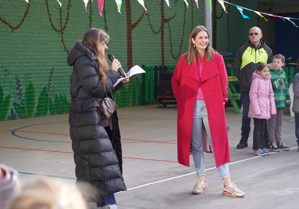 Samen met haar team bouwt ze aan een school waar verbondenheid centraal staat. Ze brengt mensen samen, geeft ruimte om te groeien en zorgt voor een leeromgeving die letterlijk én figuurlijk meer kleur krijgt, onder andere met een vernieuwde speelplaats.
